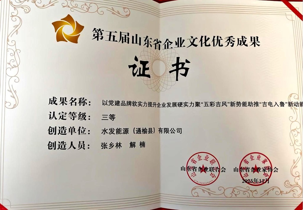 “五彩吉風”黨建品牌榮獲第五屆山東省企業文化優秀成果三等獎